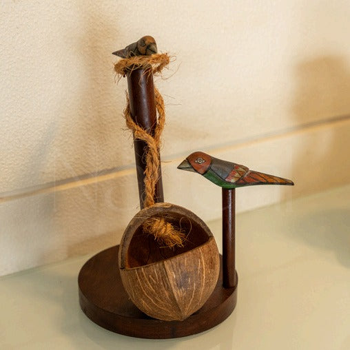 a sustainble coconutshell holder adding a warm natural glow to any space