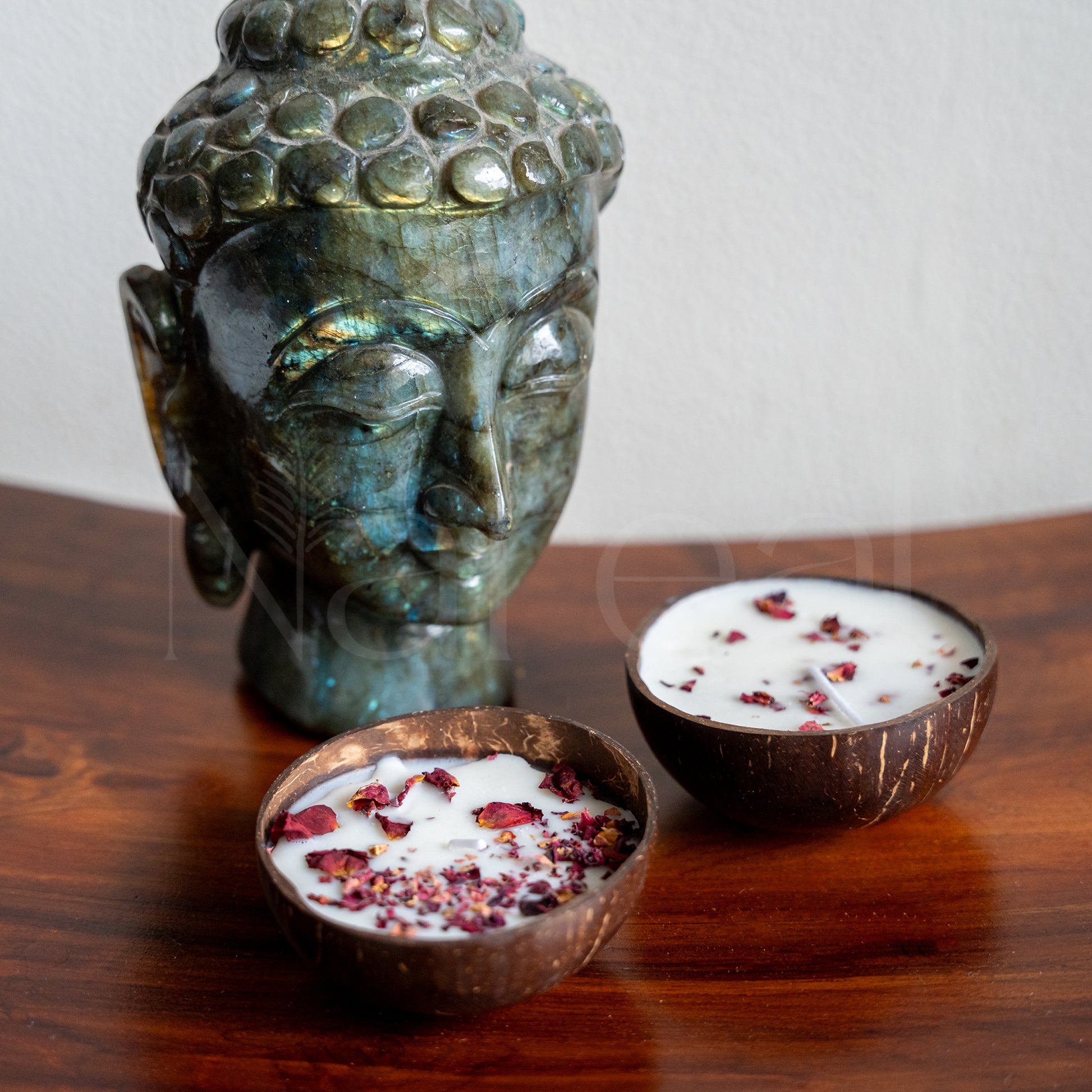 create a serene ambiance with the nareal scented candles housed in pure coconut