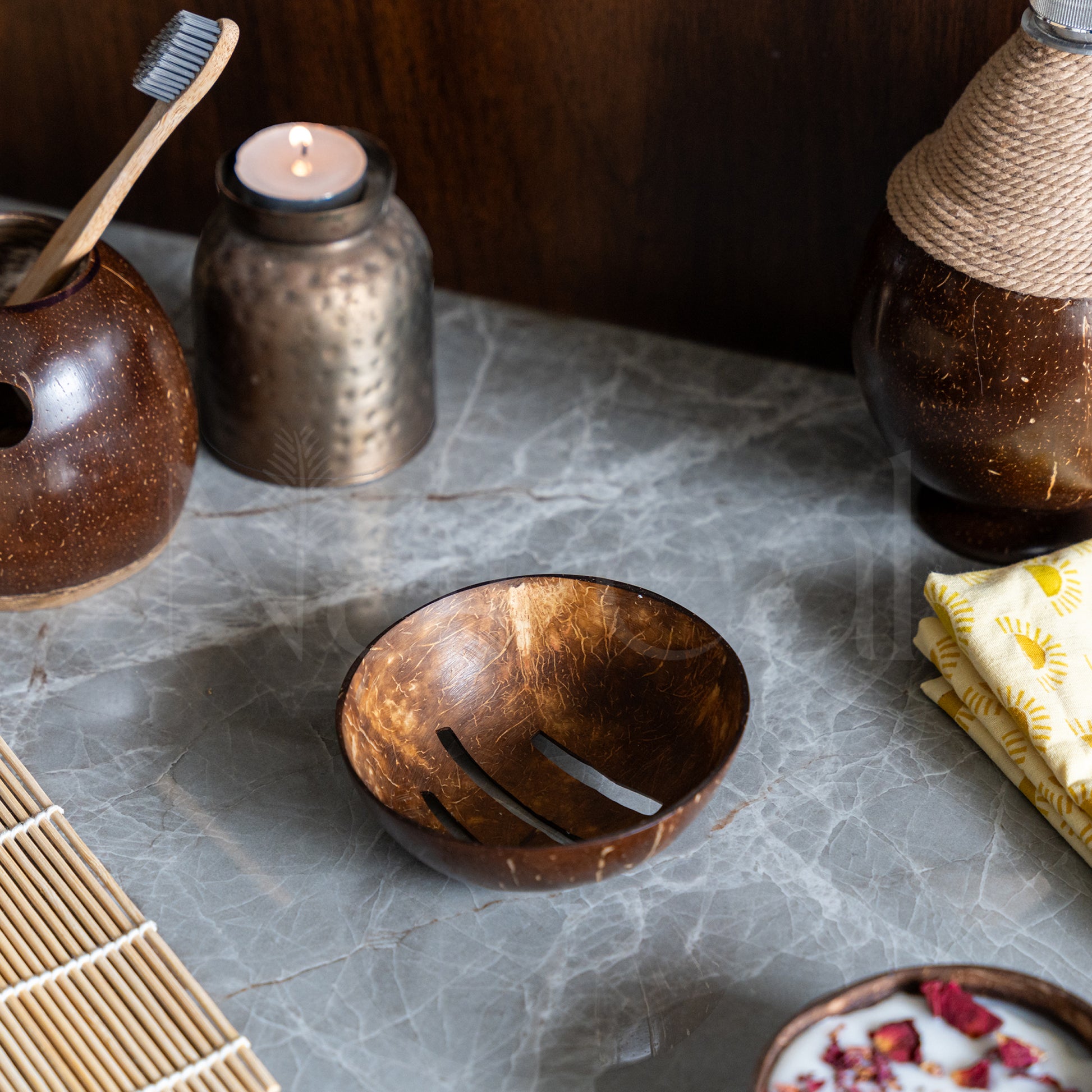 eco friendly hancrafted from pure coconut shell it keeps your soap dry