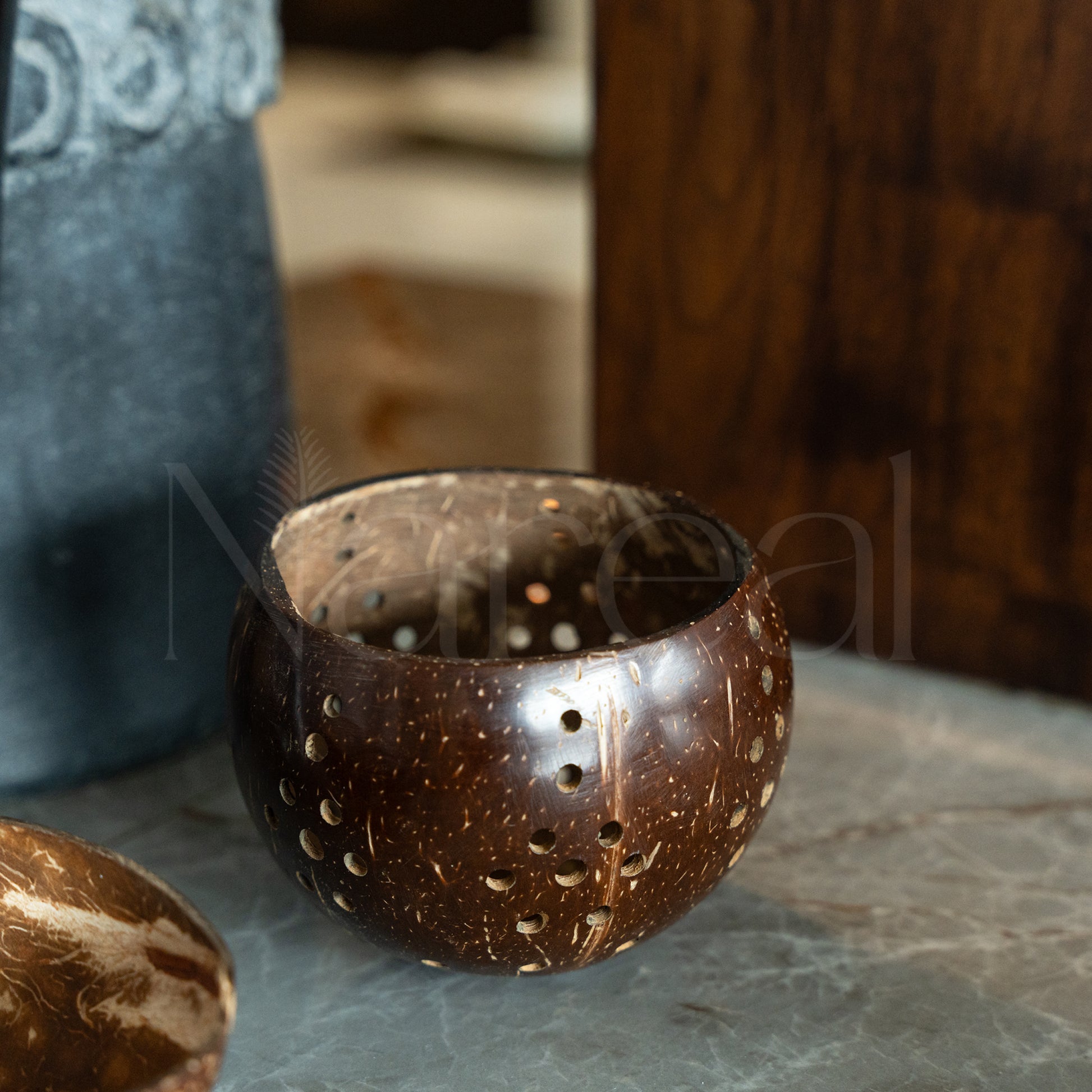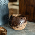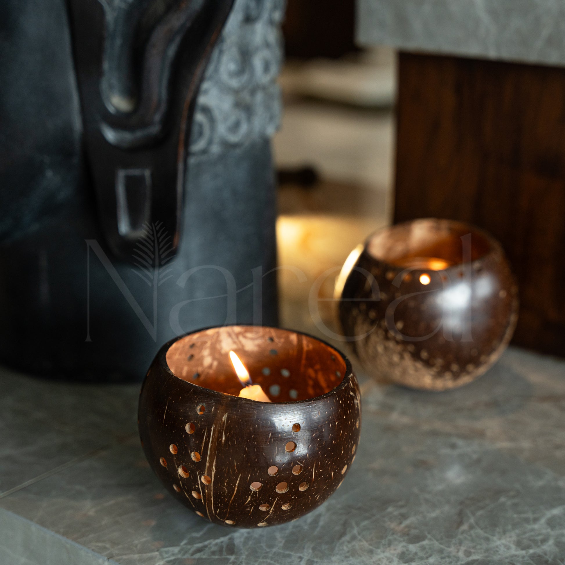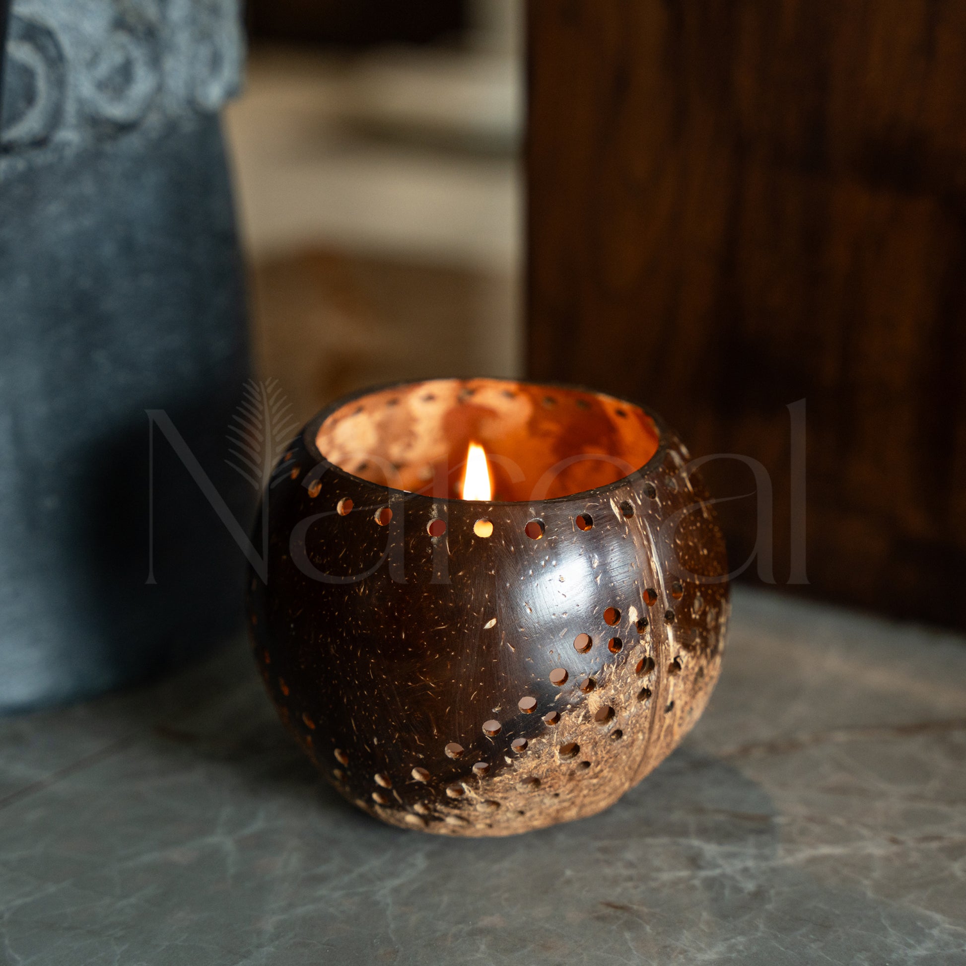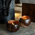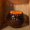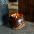 a sustainble coconutshell holder adding a warm natural glow to any space
