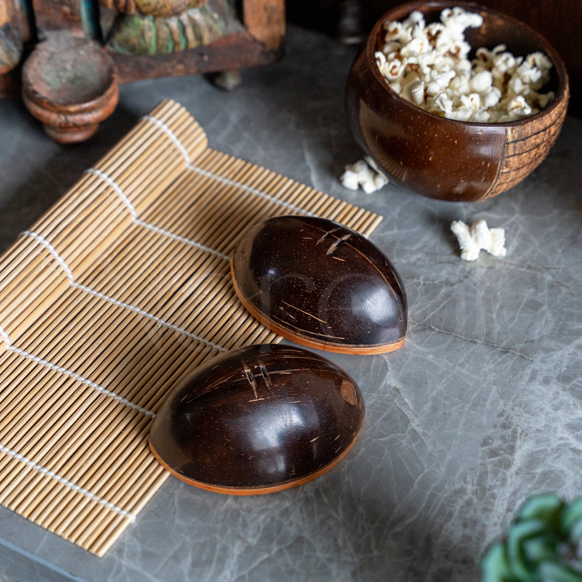 A charming eco friendly coconut shell aet designed to store your favourite spices